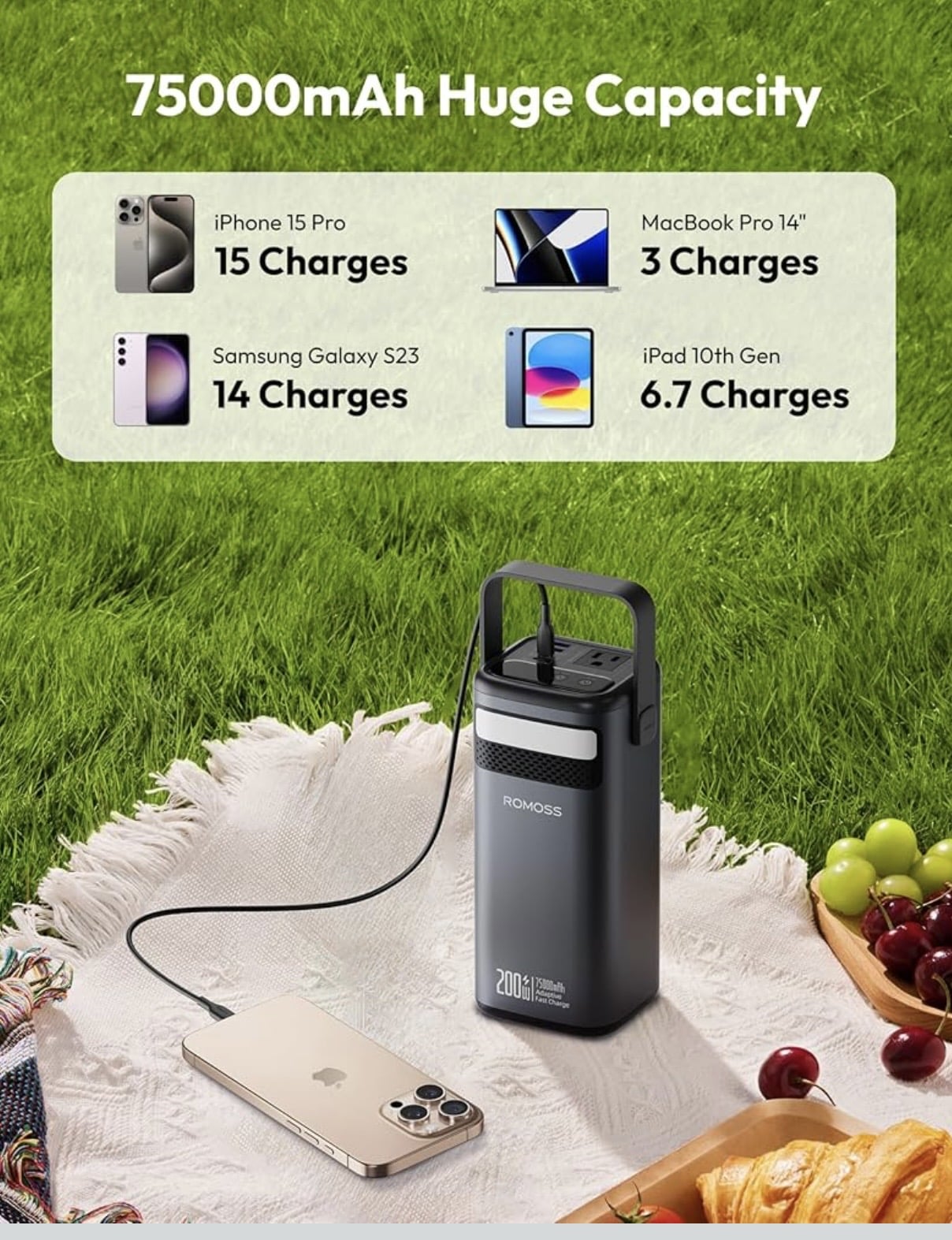 Dung lượng siêu lớn 75000mAh – Nguồn điện di động mạnh mẽ