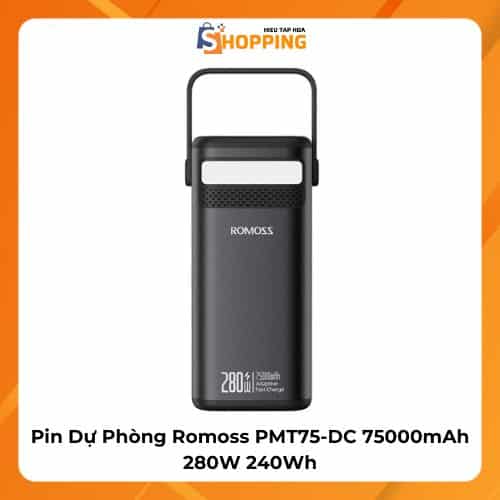 Pin dự phòng Romoss PMT75-DC 75000mAh là dòng pin sạc công suất lớn, được thiết kế cho nhu cầu sử dụng chuyên sâu như sạc laptop, thiết bị quay phim, drone, thiết bị kỹ thuật và các thiết bị điện tử tiêu thụ điện năng cao. Với dung lượng lên tới 240Wh và công suất tối đa 280W, sản phẩm đáp ứng tốt nhu cầu làm việc liên tục trong thời gian dài.